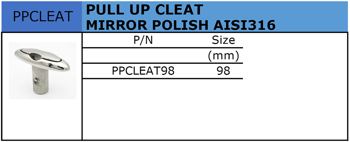 Wide range of classic cleats and bollards: Herreshoff Cleat, blue water cleat, low flat cleat, stud cleat, k cleat, mast cleat, lift eye cleat, flush cleat, pull up cleat, folding cleat, foldaway cleat, bollard.