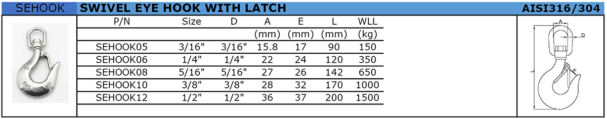 SWIVEL EYE HOOK WITH LATCH