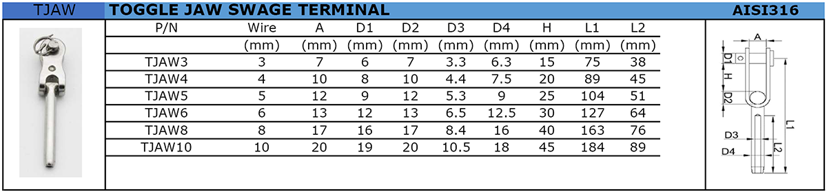 TOGGLE JAW SWAGE TERMINAL
