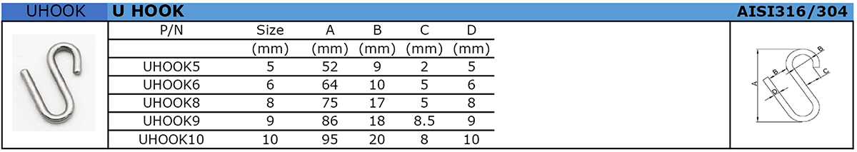 U Hook crafted from durable and corrosion resistant stainless steel, ideal for a multitude of uses in the home, marine and catering environments.